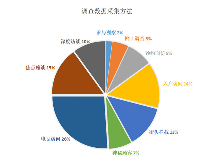 » 定量研究——隨機入戶訪問、街頭訪問、電話訪問、郵寄訪問、實地(時)監測、
